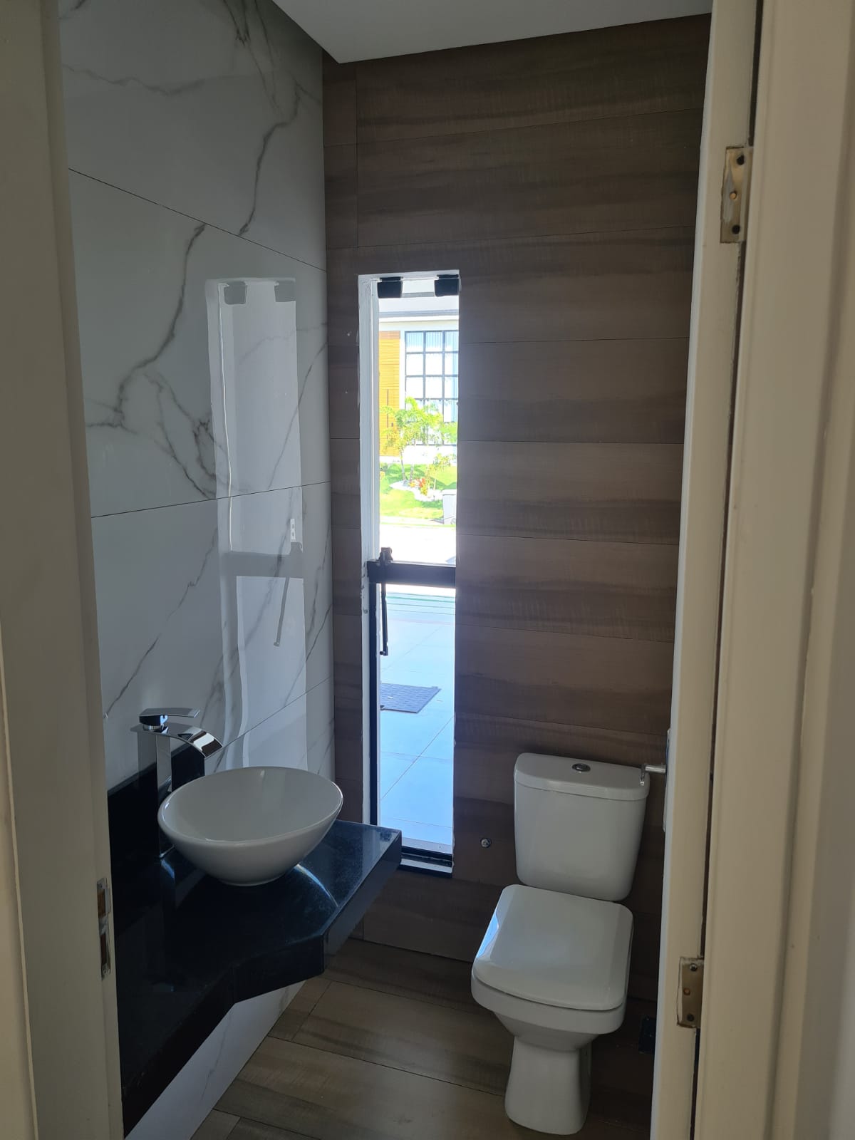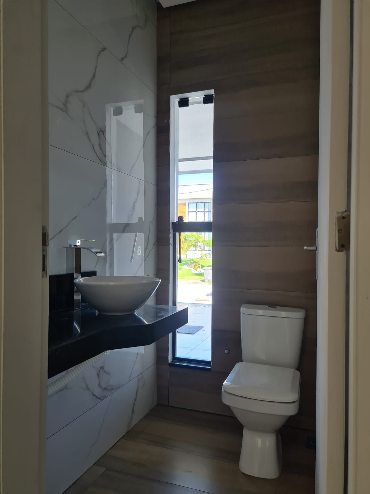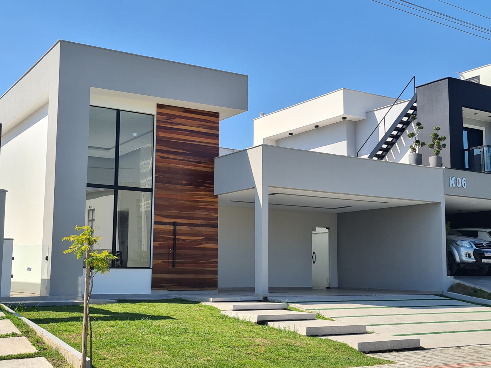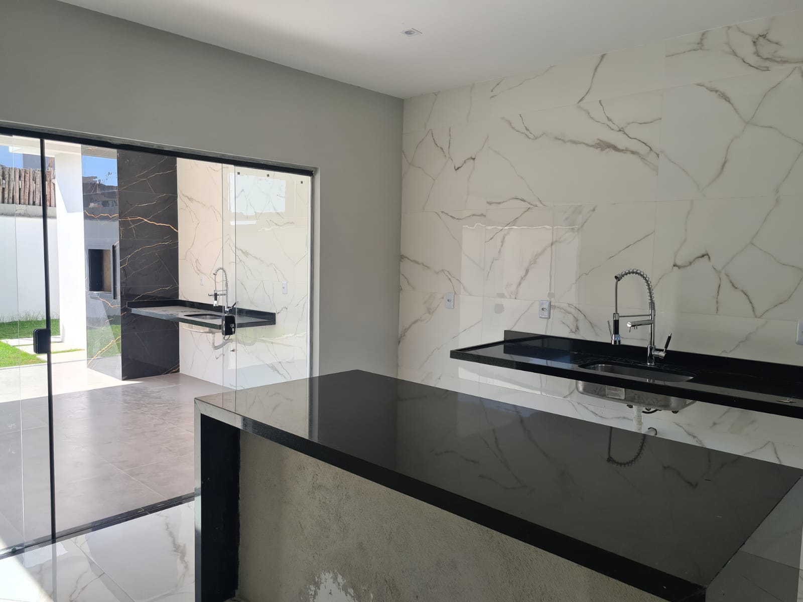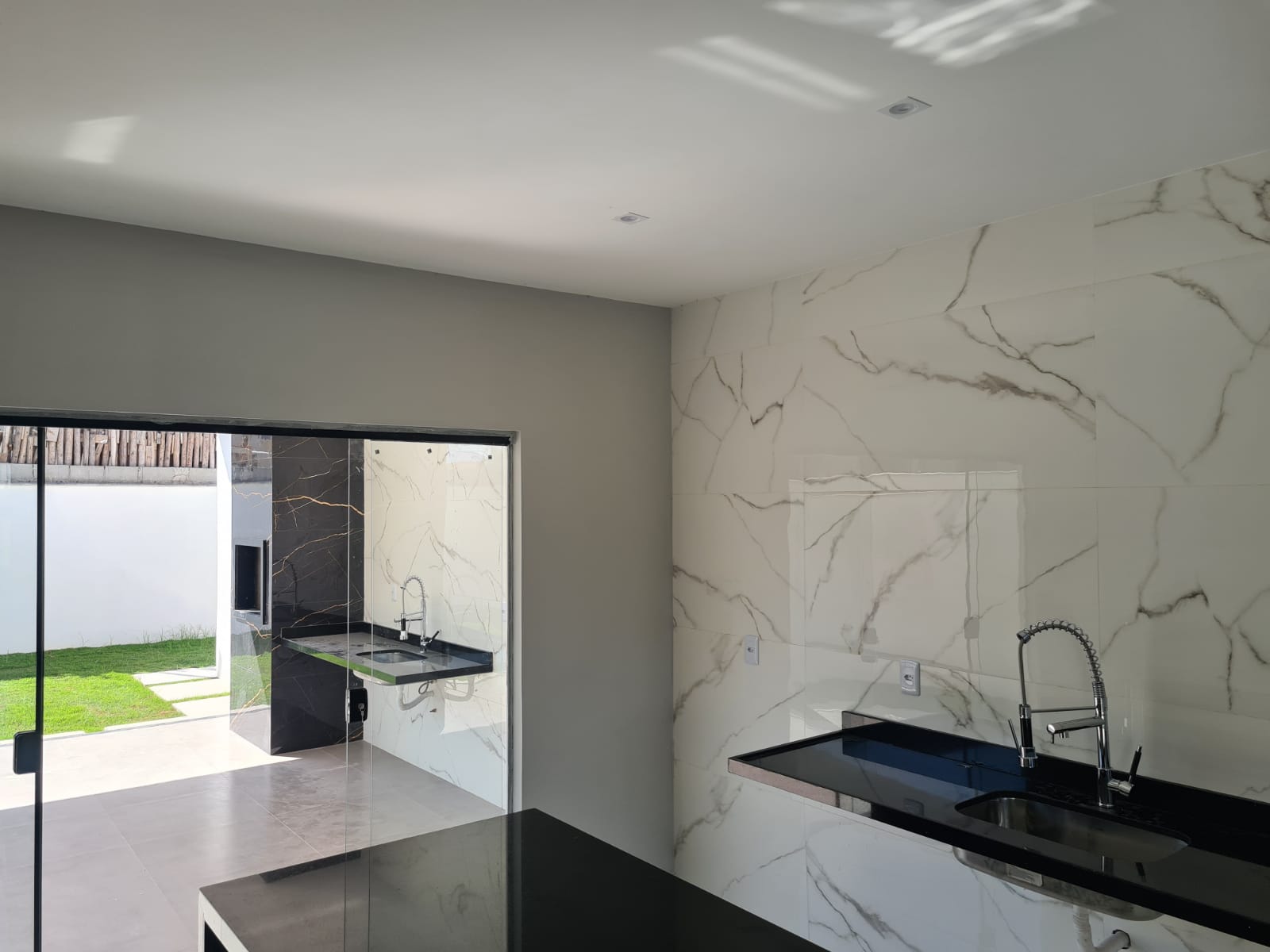 Casa de alto padrão com 200m de área construida, 3 suites com closet, lavabo, sala ampla com pe direito alto de 5m, integração com a cozinha e área gourmet, ilha na cozinha, dispensa e banheiro de serviço. Casa com fino acabamento toda rebaixada em gesso e iluminação em led, blindex, granito, 3D, e porcelanato. Cisterna de 5 mil litros e mais uma caixa d,agua de 2 mil. ondomínio com sistema de segurançae monitoramento 24h, piscina, academia, quadra poliesportiva e churrasqueira.