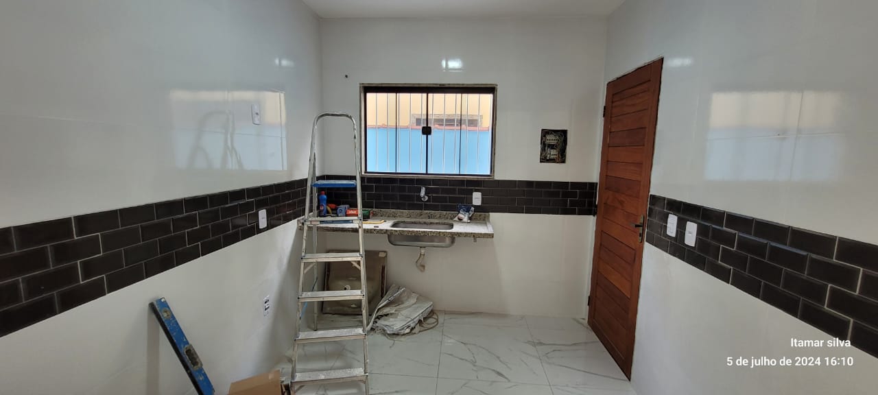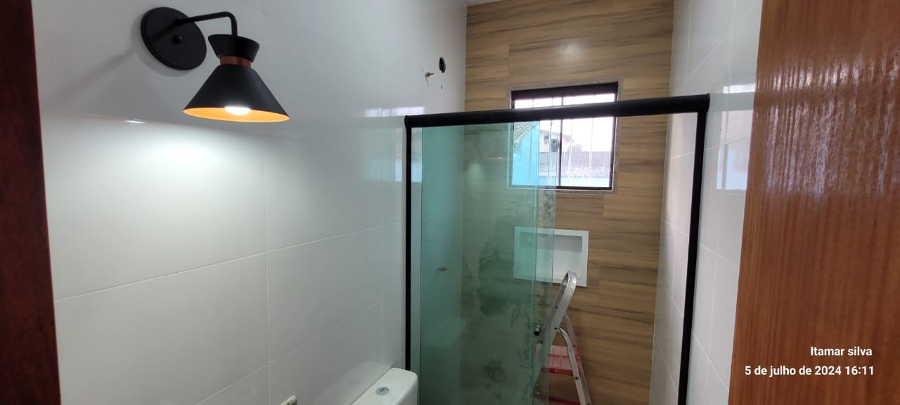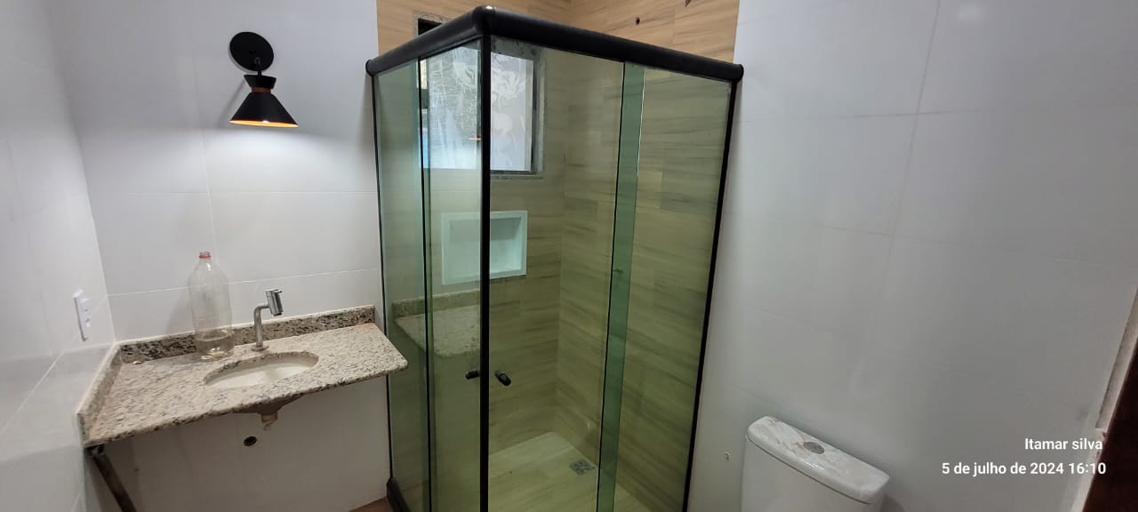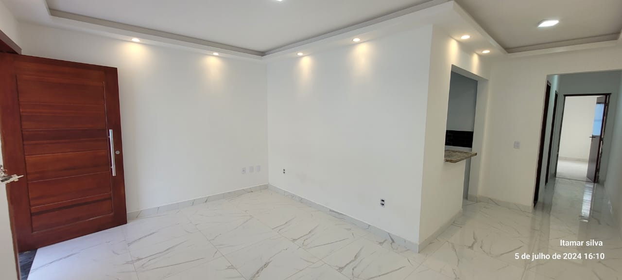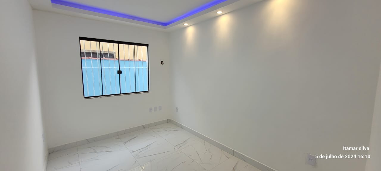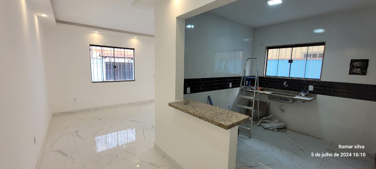 Casa linear composta por: 2 quartos sendo um deles suite, sala, cozinha americana, banheiro social, varanda e área de serviço. Sala ampla com iluminação em led e acabamentos com gesso, blindex e granito. terreno gramado com portão de alumínio automatizado. Boa localização próximo a condução, escola e comércio.