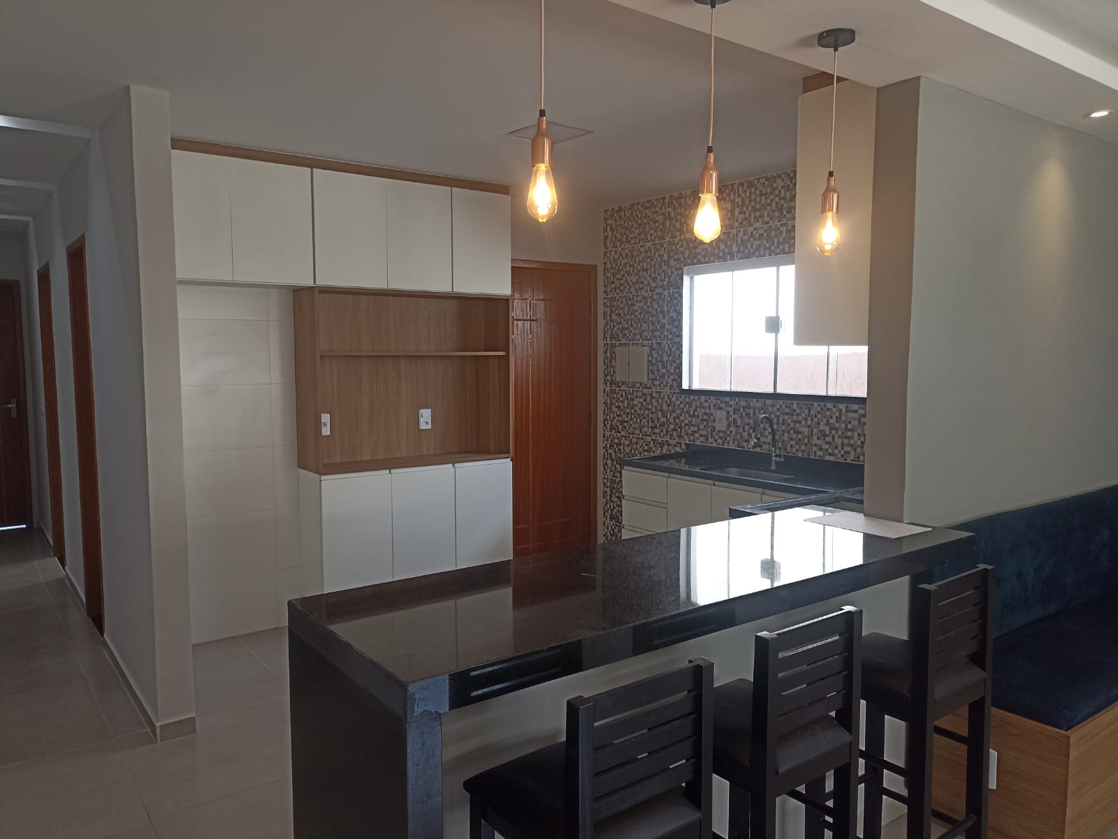 linda casa no barroco composta por: 2 quartos sendo 1 deles suite, sala ampla com 20m, cozinha americana, banheiro social, varanda e área de serviço. Moveis planejados na cozinha e nos banheiros.<br>Área externa com piscina, churrasqueira, caixa d,agua com 2000 litros istalação para agua da rua e um poço artesiano em funcionamento alem de piso em toda a área externa.