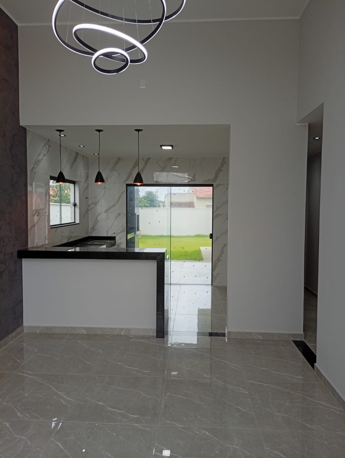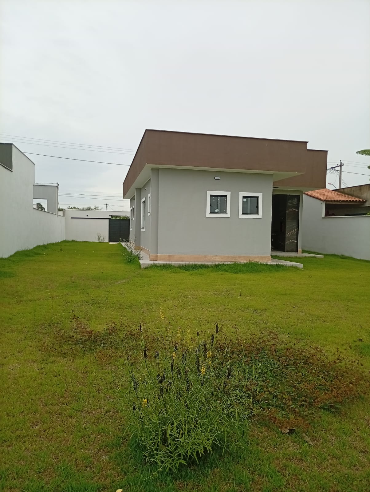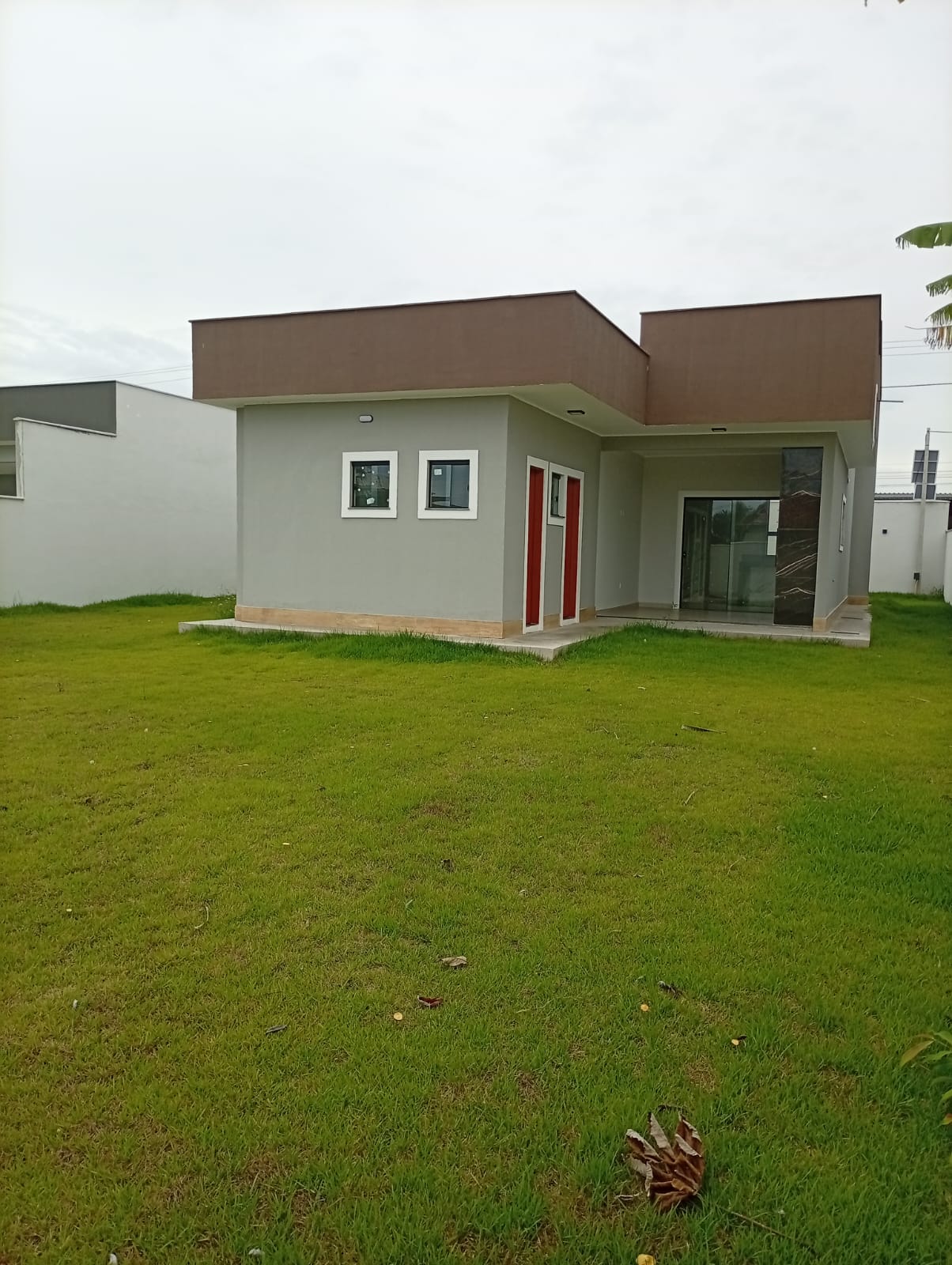 Linda casa no centro do terreno de 500m com área gourmet, lavabo, área de serviço e chuveirão na parte externa.<br>Casa composta por 3 quartos sendo 1 deles suite com closet, sala com pe duplo, cozinha americana, banheiro social e varanda. Casa feito com ótimo acabamento em porcelanato, blindex, granito, gesso e led.
