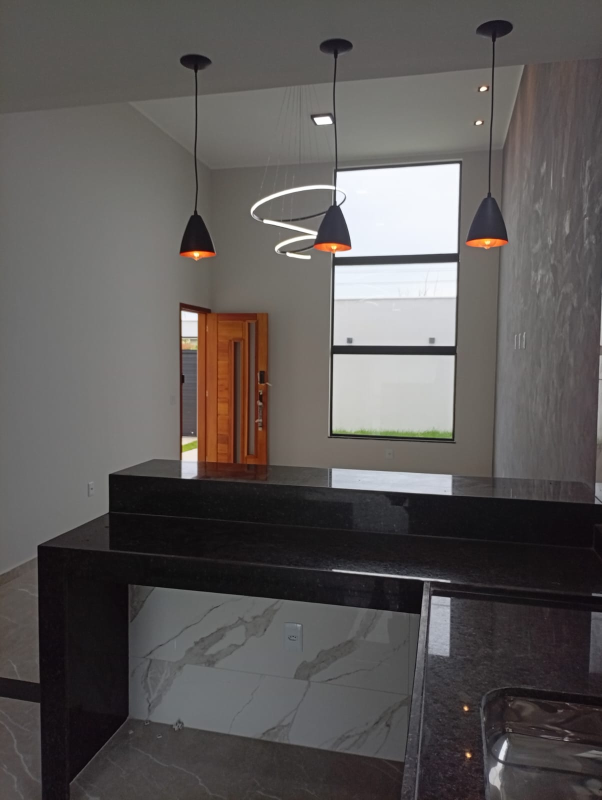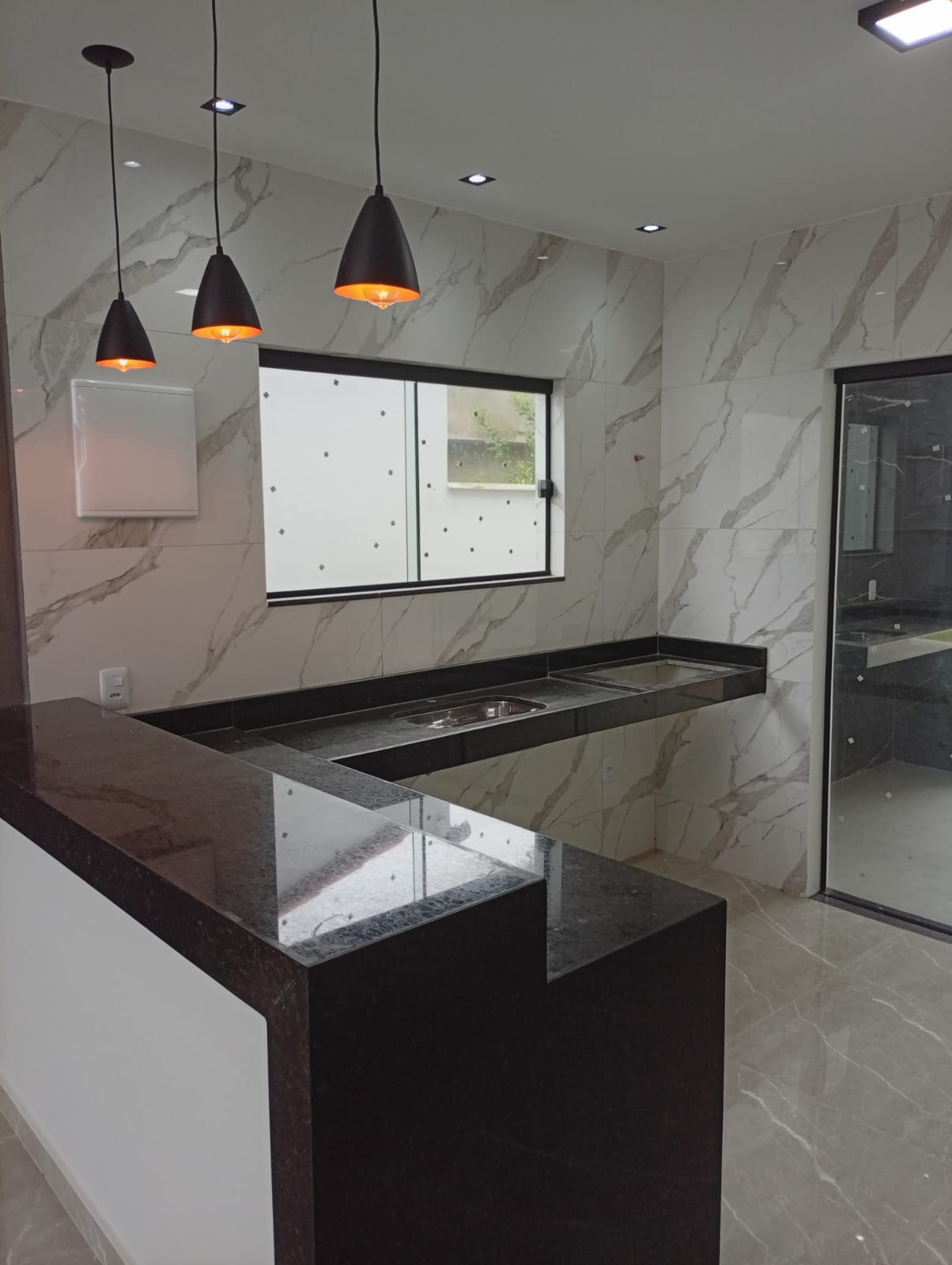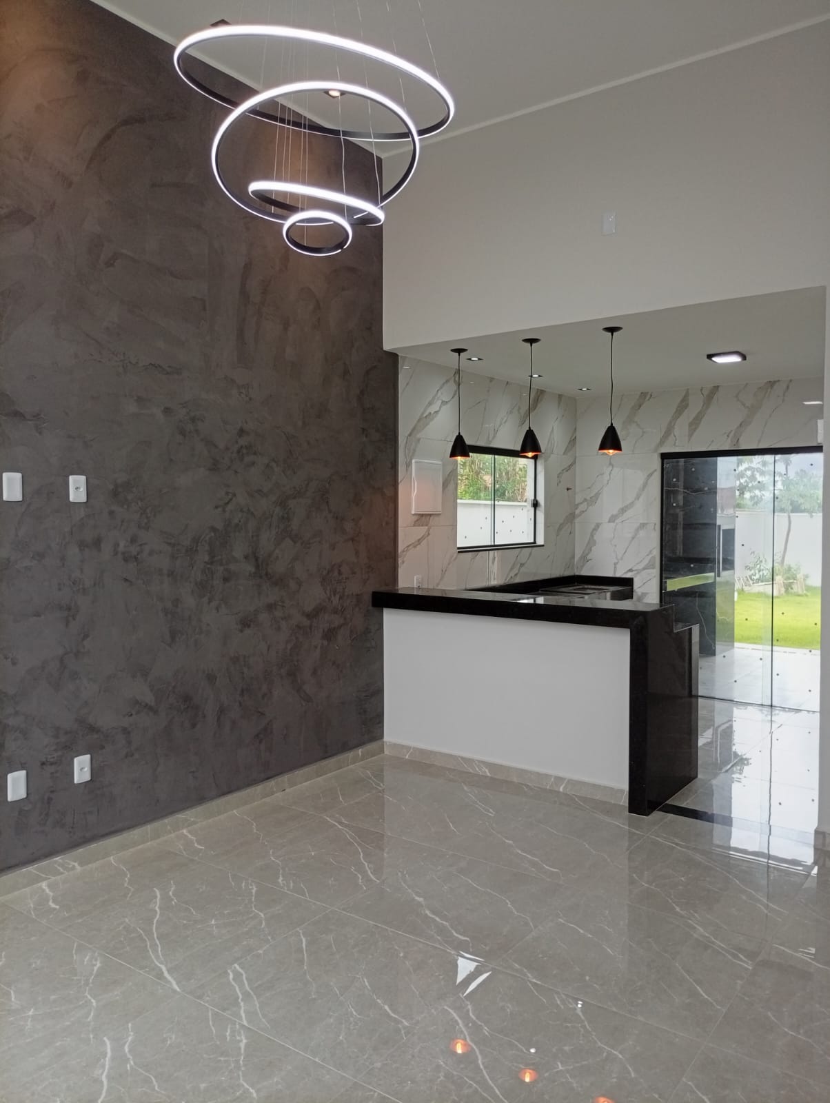 Linda casa no centro do terreno de 500m com área gourmet, lavabo, área de serviço e chuveirão na parte externa.<br>Casa composta por 3 quartos sendo 1 deles suite com closet, sala com pe duplo, cozinha americana, banheiro social e varanda. Casa feito com ótimo acabamento em porcelanato, blindex, granito, gesso e led.