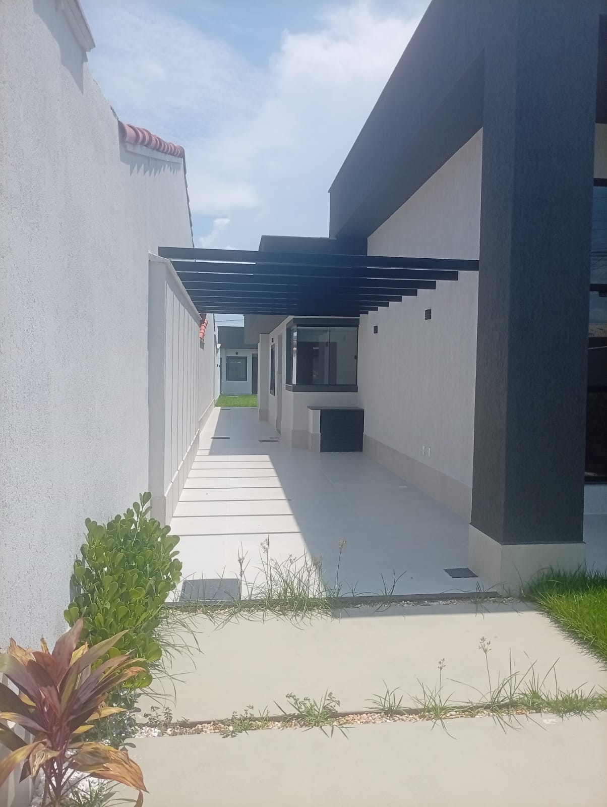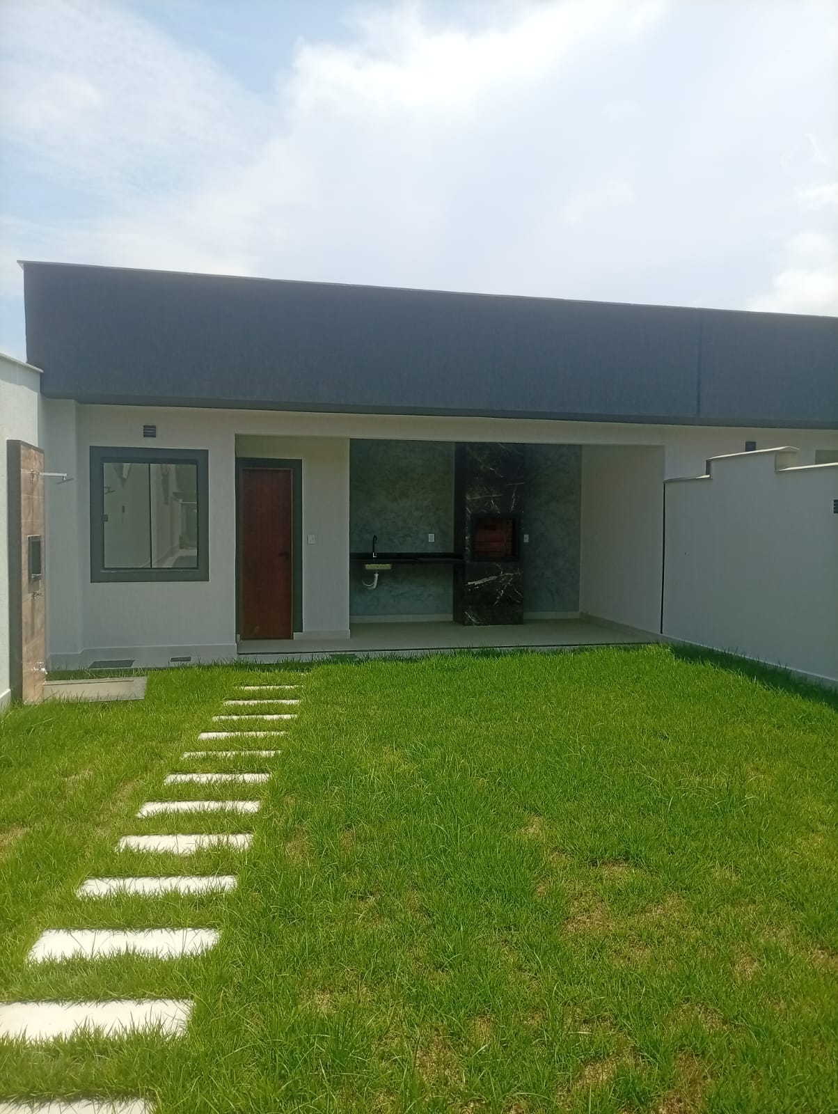 Casa 3 quartos sendo um deles suite, sala ampla com pe duplo, cozinha americana, banheiro social, varanda e área de serviço. Parte externa com jardinagem, pergolato, área gourmet completa com churrasqueira, pia, bancada, quarto externo e lavabo. Portão de alumínio automatizado.<br>Casa com fino acabamento em porcelanato, gesso, blindex, granito e led.