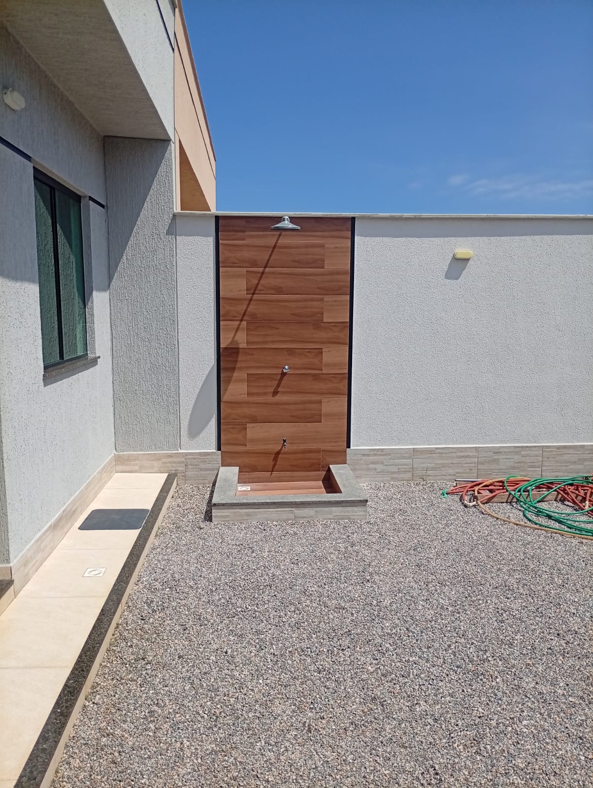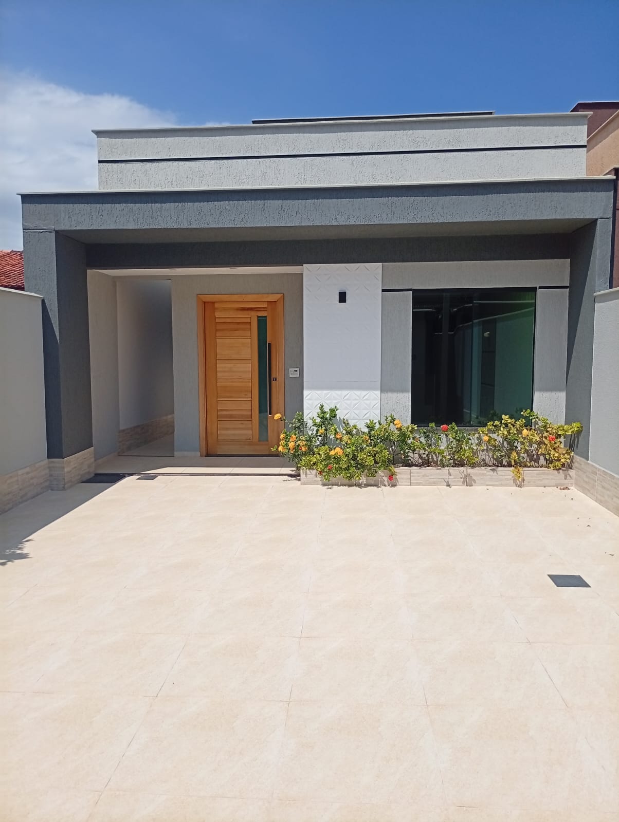 Casa composta por: 3 quartos sendo 1 deles suite, sala ampla, cozinha americana, banheiro social, varanda e área de serviço. Parte externa com área gourmet , banheiro e chuveirão. Portão de alumínio automatizado. <br>Casa em fino acabamento e em excelente localizaçaõ próximo a praia, comercio e condução em rua asfaltada e com agua da Cedae.